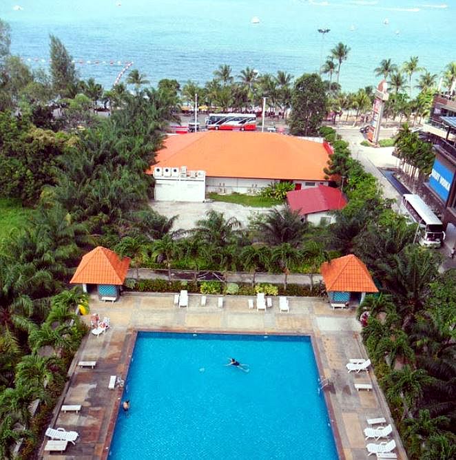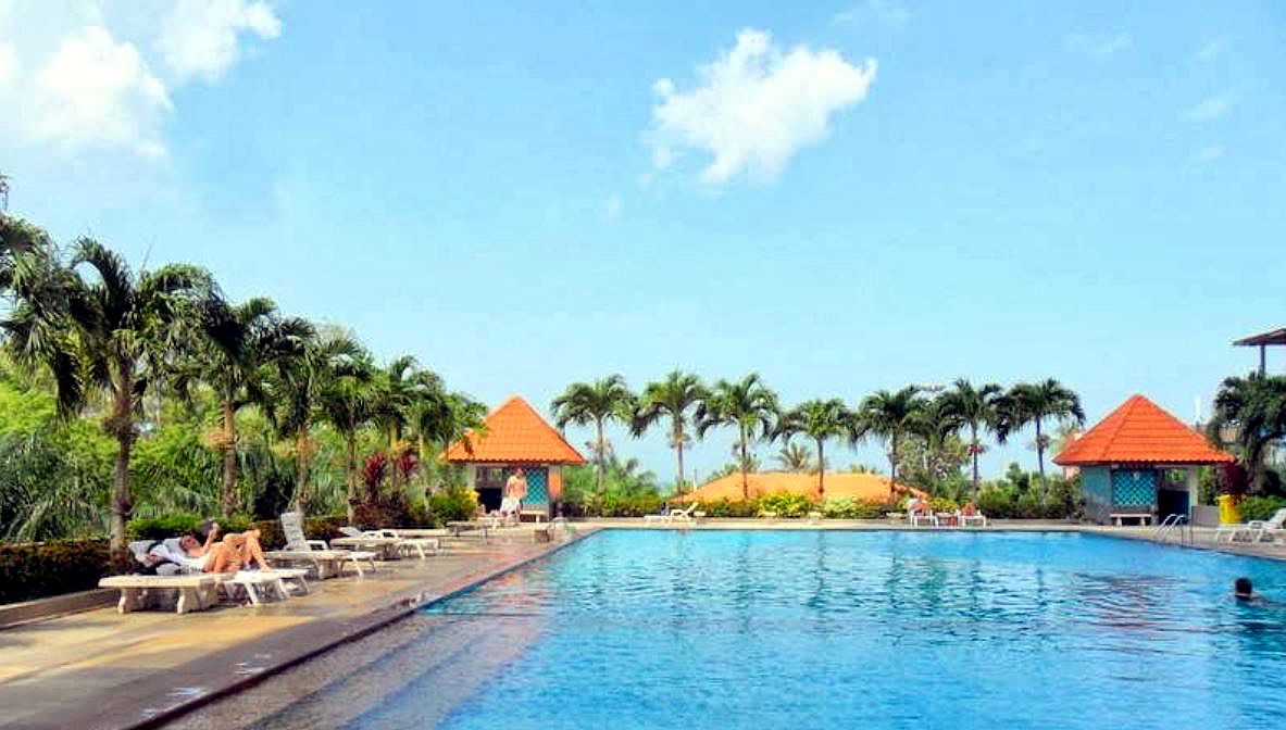 There is a huge swimming pool and many many suites. I paid around 2200 baht per day with no free cleaning, in a full studio suite on the 22nd floor.