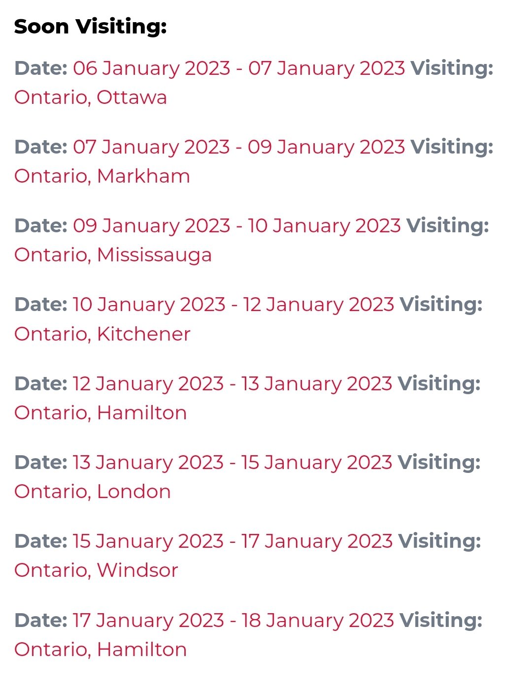 Talia Rose January's ontario tour