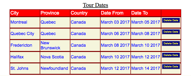 My travel dates are as follows: